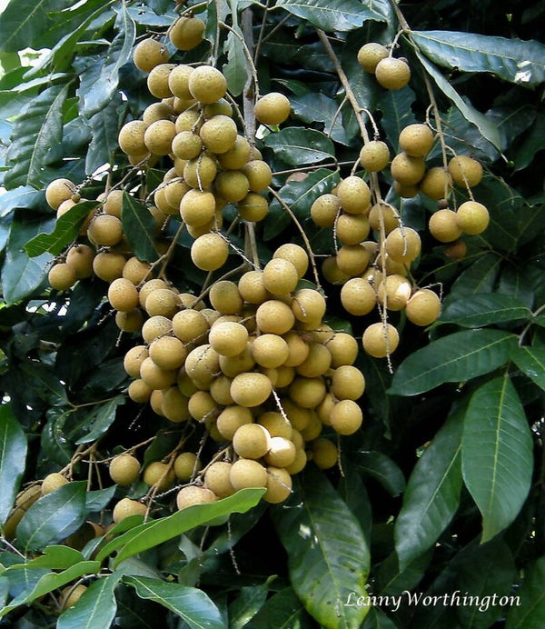Longan trees produce clusters of sweet, translucent fruit with a rich, floral aroma and unique caramel flavor. This stunning evergreen is perfect for warm climates or can be grown in containers indoors in cooler regions.